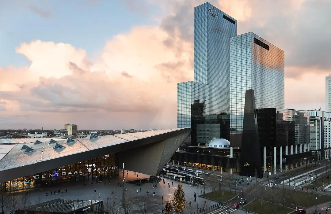 Rotterdam City Centre is one of the most walkable districts in the Netherlands, with the Markthal, Cube Houses, Lijnbaan shopping street, and Museumpark all reachable on foot from most hotels. The area is anchored by Rotterdam Centraal Station, one of the busiest transport hubs in the country, connecting you to Amsterdam, The Hague, Utrecht, and Schiphol Airport in under an hour. Foot traffic around the station and Weena boulevard peaks during morning and evening rush hours, and weekend crowds build noticeably in summer around the Blaak area.